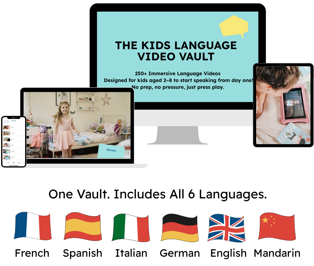 The Language Video Vault™️ gives you everything you need to fast track your kids’ progress through fun, play-based learning: